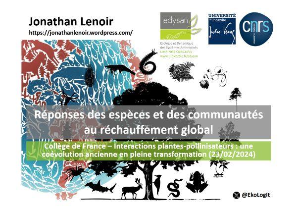 ?Interactions plantes-pollinisateurs : hier, aujourd?hui et demain?, séminaire proposé par le collège de France et qui regroupe plusieurs conférences dont cette intervention de Jonathan Lenoir qui fait une synthèse des impacts du changement climatique sur la biodiversité avec de nombreux exemples sur la montagne.